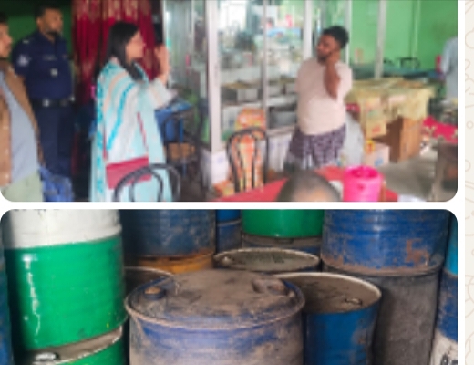 নরসিংদীর শিবপুরে তেল মজুদ রাখায় জরিমানা ৮ হাজার টাকা।