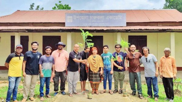 গাছ লাগান পরিবেশ বাঁচান বলে গাছ লাগাচ্ছেন শিক্ষক মো. তারিক হাসান